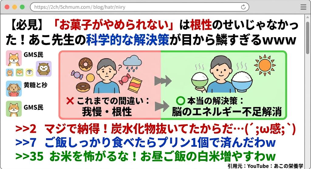【必見】「お菓子がやめられない」は根性のせいじゃなかった!あこ先生の科学的な解決策が目から鱗すぎるwww